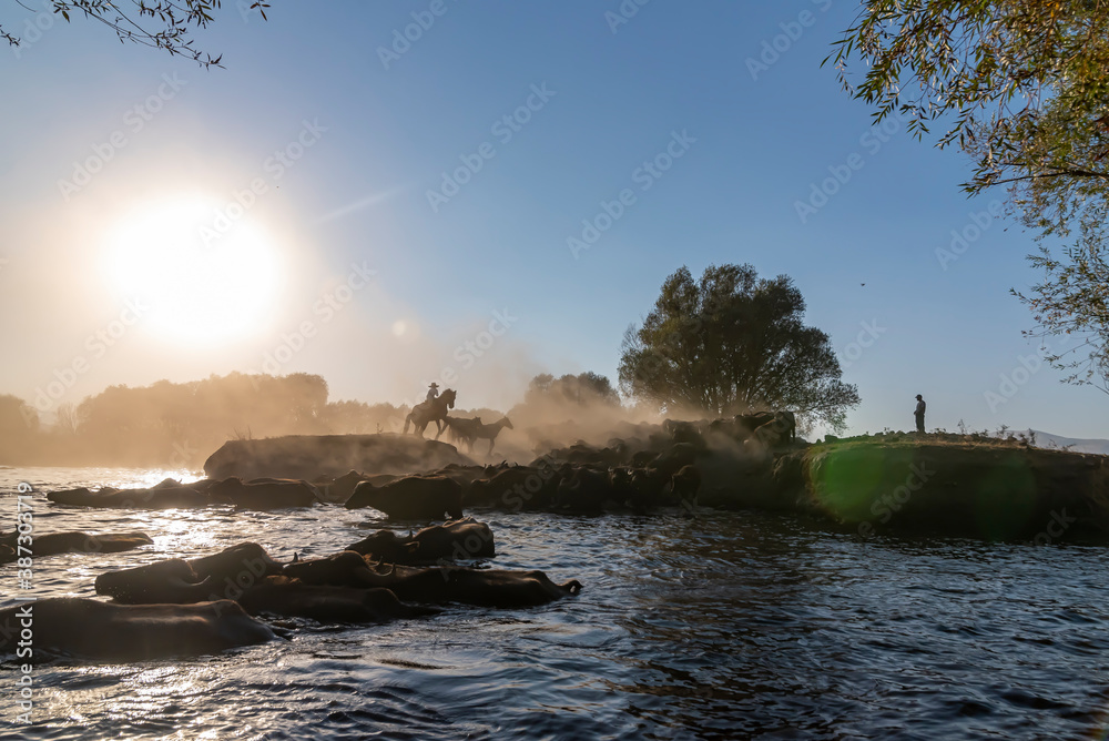 wild buffalos in lake Erciyes Mountain Kayseri, Turkey