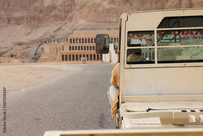 エジプトのハトシェプスト女王葬祭殿に向かう送迎トラック
