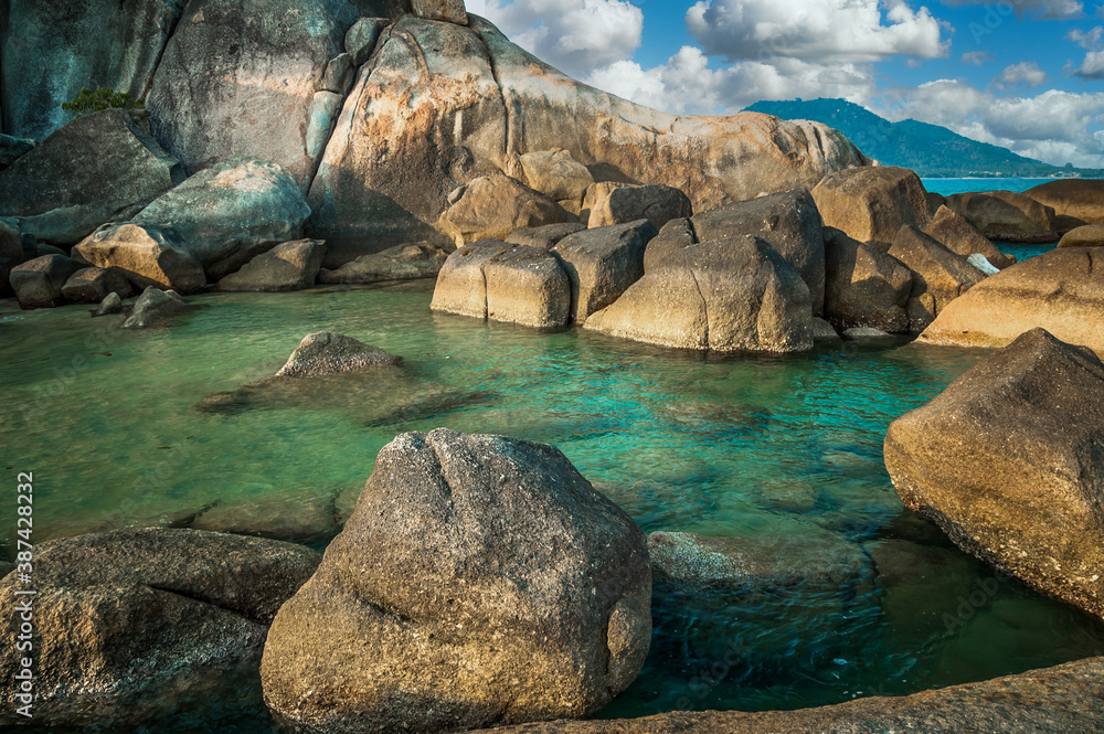 Seascape with rocks around Lamai beach , Samui Island, Kingdom of Thailand.