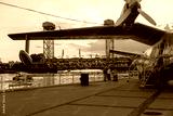 old two-tier bridge on the Pregolya river in Kaliningrad