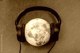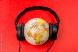 E-concert. Internet entertainment. Globe in headphones