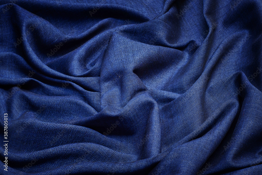 Navy blue fabric texture background top view. Crumpled Cloth Blank Background