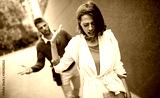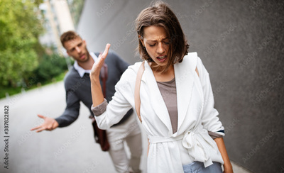 Breakup of couple with man and sad girlfriend outdoor. Divorce, couple, love, pain concept.