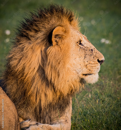 Profile of male lion posing in Kenya