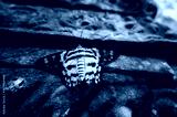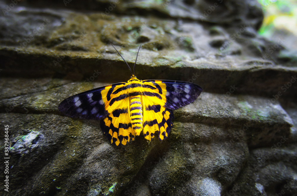 A butterfly with its unique color yellow and black, were sitting on a strong pillar