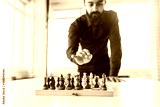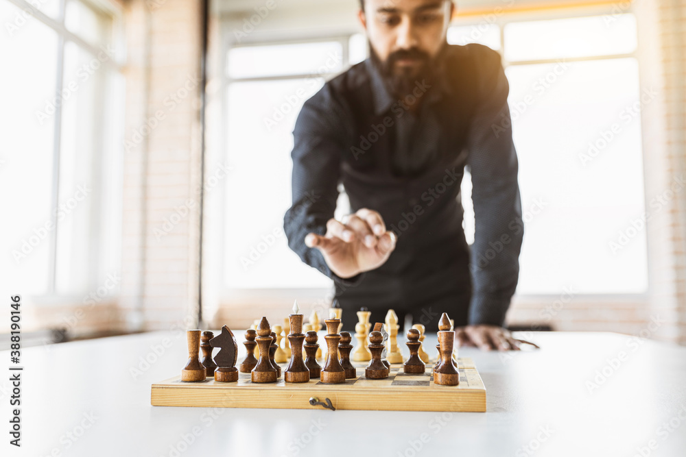 planning strategy with chess figures on an old wooden table