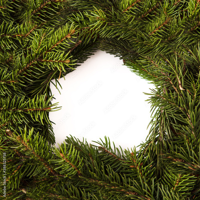 Merry Christmas and happy New Year background with evergreen tree branches creative layout.
