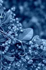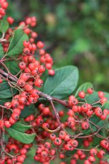 Cotoneaster lacteus bush with manry red berries on branches on autumn season