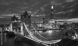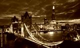Aerial view to the Tower Bridge and skyline of London, UK
