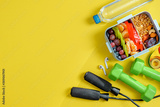 balanced sports nutrition in a lunchbox. healthy and healthy food after a productive sports workout.