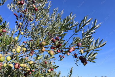 Branche d'olivier avec des olives fraîches mûres prêtes pour la récolte.