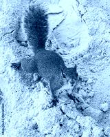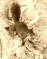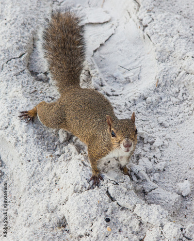 Brown american squirrel on sandy Siesta Cay beach