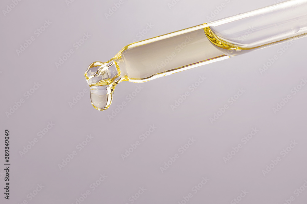 Pipette with essential oil The concept of beauty, skin care, aromatherapy, spa, cosmetology. Close-up, detailed macro photo...