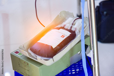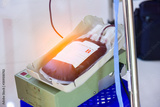Nurse checking access at blood transfusion of blood donor at hospital.