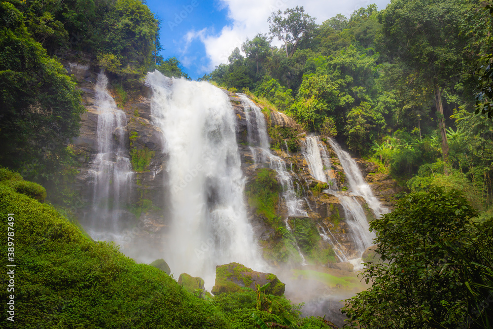 Wachirathan Waterfall is a large waterfall in deep forest on Doi Inthanon, Chiang Mai, Thailand.