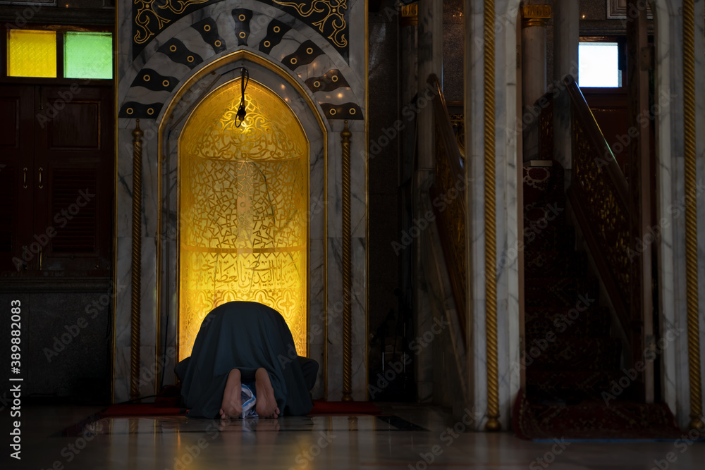 Muslim men pray at a mosque in Phra Nakhon Si Ayutthaya Province, Thailand.