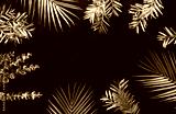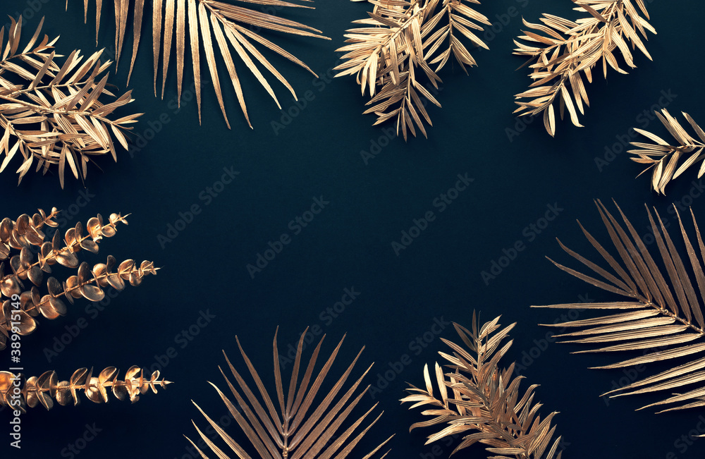Collection of tropical leaves in gold color on black space background.Abstract leaf decoration design