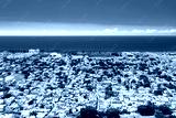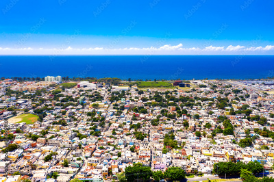 Aerial drone view of Santo Domingo city with caribbean sea. The capital of Dominican Republic