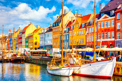 Copenhagen iconic view. Famous old Nyhavn port in the center of Copenhagen, Denmark during summer sunny day