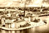 Beautiful aerial view of Stockholm Old town Gamla Stan from the City Hall Stadshuset. Beautiful summer sunny day in Stockholm, Sweden.