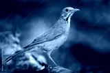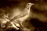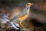 Kurrichane thrush, Turdus libonyana, bird sitting on the tree trunk in the nature habitat. Thrush in nature habitat, grey orange bird with red bill in Okavango delta, Botswana in Africa.