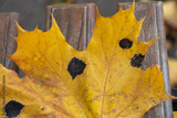 Closeup view photography of green and yellow leaves of maple trees with ugly round black spots of fungus disease