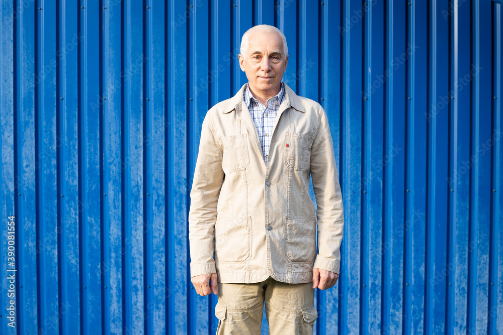 Mature man in blue background, copyspace. Senior businessman feeling confident.