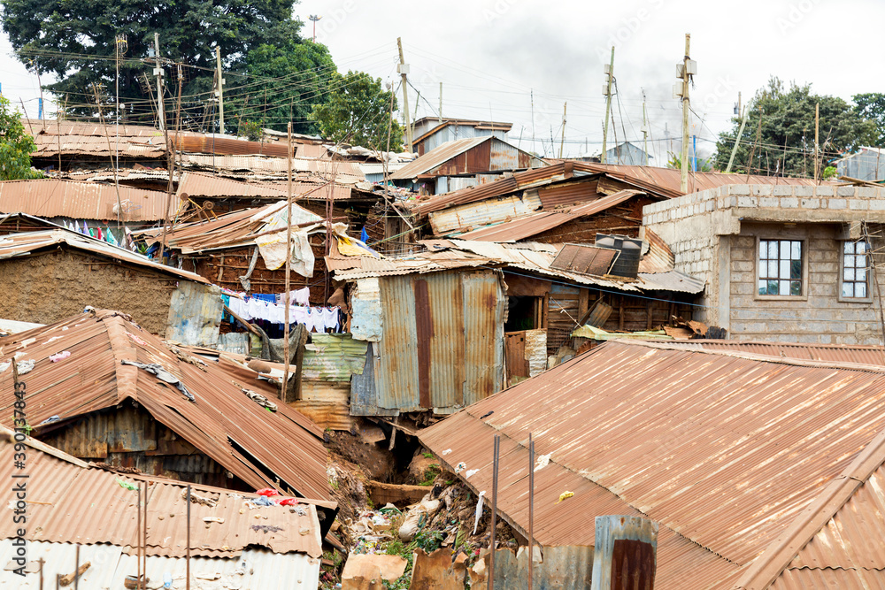 Kibera slum in Nairobi. Kibera is the biggest slum in Africa. Slums in Nairobi, Kenya.