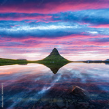 Colorful sunrise on Kirkjufellsfoss waterfall. Amazing morning scene near Kirkjufell volkano, Iceland, Europe. Great purple sky glowing on background. Landscape photography