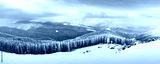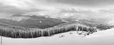 Fantastic winter landscape with snowy trees. Carpathian mountains, Ukraine, Europe. Christmas holiday background. Landscape photography