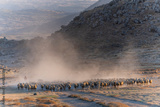White sheep on the land with beautiful sunset. Many sheep walking around the field .Farm animals concept.