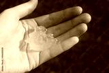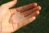 Female hands holds big hailstone after the storm