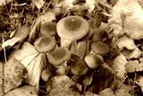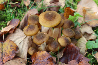Clump of Honey Fungus in the forest. Armillaria mellea