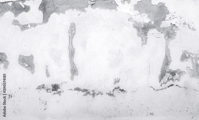Old white concrete wall are peeling. Painted concrete wall abstract texture background. Deteriorated over time. Cracked cement wall. Empty white wall texture background for minimal life.