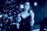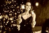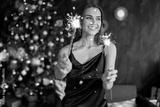 Christmas and new year concept Fashion young beautiful woman in luxury dress. . girl with sparlight lights and champagne