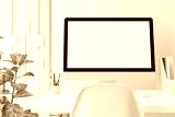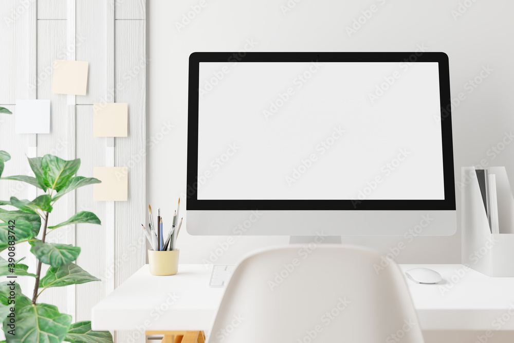 Workspace with mockup blank screen laptop computer.