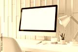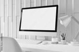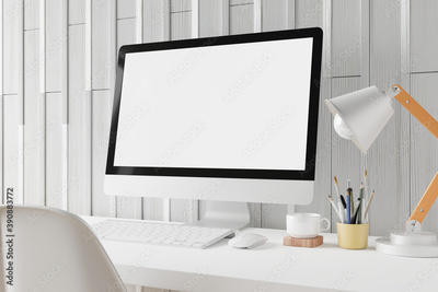 Workspace with mockup blank screen laptop computer.