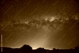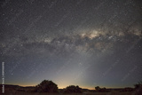 Stary sky with milky way across the frame sunrise and mointains in the dark background in Argentina Patagonia south America