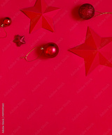 Christmas or New Year concept red frame with festive decoration. Copy space. Chinese or Lunar New Year greeting card