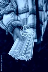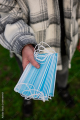 A handful of new clean masks fanned out by one person