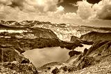 Twin Lakes - Snow even in August around alpine lakes near the Beartooth Pass, Wyoming.