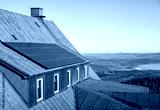 Solar panels on an a roof of an old mountain shelter.