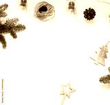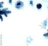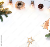 Christmas, New Year white frame with festive modern decoration. Winter holiday flat lay. Top view. Copy space