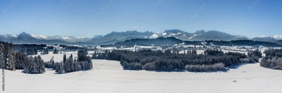 panoramic landscape at winter with alps mountains in Bavaria