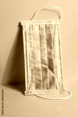medical protective masks that protects against the virus isolated on pink and yellow background. protection against bacteria