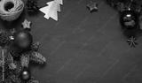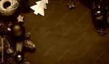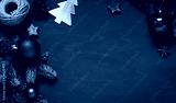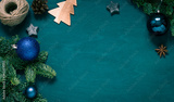 Christmas, New Year green wooden frame. Winter holiday concept flat lay. Top view. Copy space