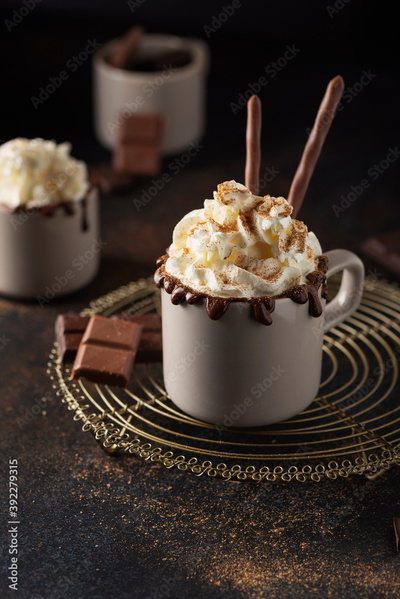 A cap of hot chocolate with whipped cream