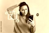 Young woman holding mobile phone looking too much dislikes on her social media post