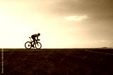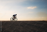 Handsome cyclist in sport clothing biking on road