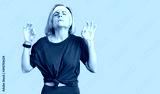Young blonde woman wearing sportswear relax and smiling with eyes closed doing meditation gesture with fingers. yoga concept.